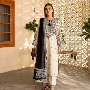 Step into refined sophistication with WHITELIME, a premium 3-piece embroidered set crafted from luxurious Stone Lilen. With rich embroidery across the shirt, trouser, and dupatta, this ensemble is perfect for festive gatherings, family events, or any moment you want to make unforgettable.
